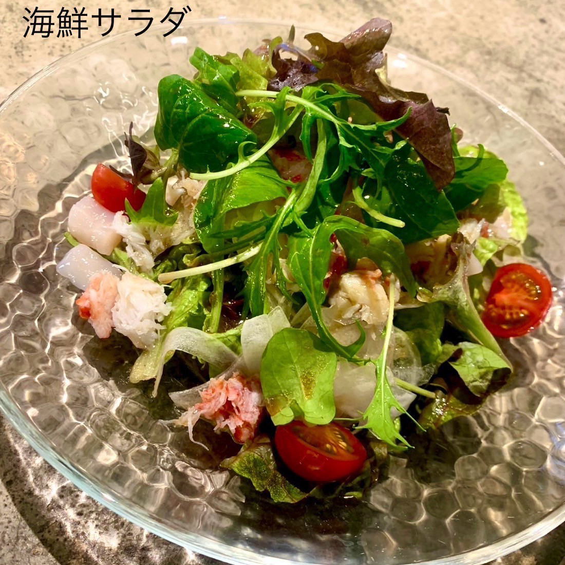 海鮮サラダは、新鮮な魚介類と野菜を組み合わせた、さっぱりとし...