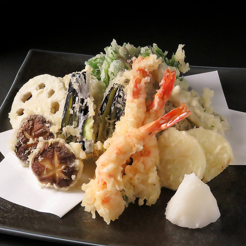 天ぷら盛り合わせ 04 揚げ物 X Facebook LINE Pinterest コピー 2024.10.20 天ぷらの盛り合わせは、サクサクの衣と素材の旨味を活かした日本料理の代表的な一品です。エビや魚、野菜などさまざまな具材が使われ、食卓を華やかに彩ります。揚げたての天ぷらは、軽くて香ばしく、外はカリッと中はふんわりとした食感が楽しめます。